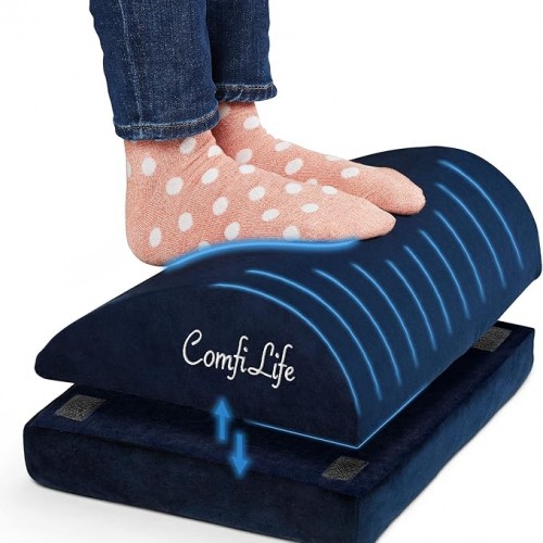 ComfiLife Foot Rest for Under Desk at Work – Adjustable Height Memory Foam Foot Stool for Under Desk, Office Chair & Gaming Chair – Ergonomic Footrest for Back & Hip Pain Relief (Navy)