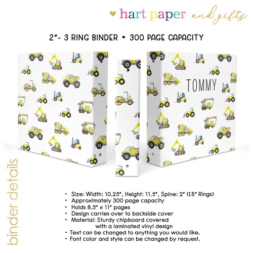 Construction Personalized Custom 2″ 3 Ring Binder • School Office Supplies