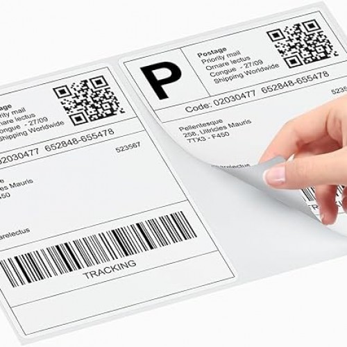 - Self-adhesive labels stick directly to cardboard, paper, envelopes, glass, and other flat surfaces.