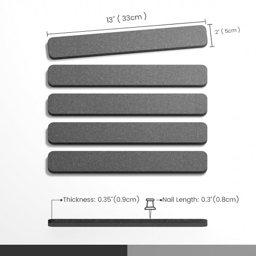 - 【Compact & Slim Design】Each felt strip features an ultra-slim 13″x2″x0.35″ design with 35 push pins and 20 adhesive pads included—create unique bulletin boards at home, office, or dorm to unleash your creativity and personalize any space.