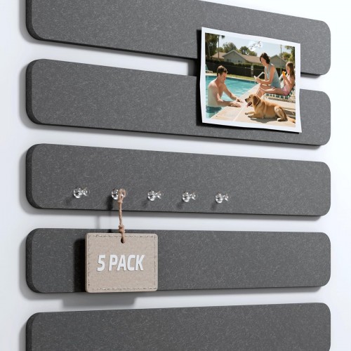 Cork Board Alternative Felt Strip Board 8-Pack 13″x2″, Office Pin Board with 50 Push Pins, Adhesive Install for Bedroom Door & Home Office(Marble Gray)