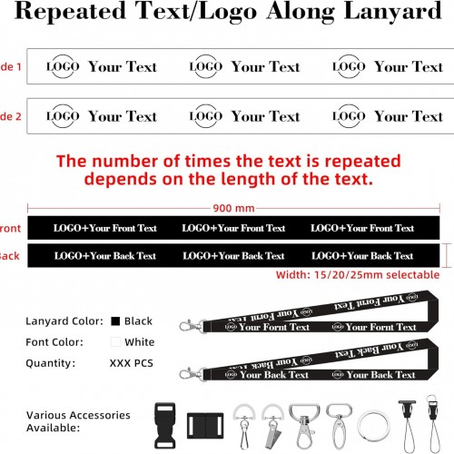 - 【Lanyard Size】:Width: 0.8 “, 0.6”, 1 “. Length: 17.7 inches for regular webbing, 21.7 inches for webbing with separator buckle. The size of the lanyards can be customized according to your design, you can choose different widths and lengths.