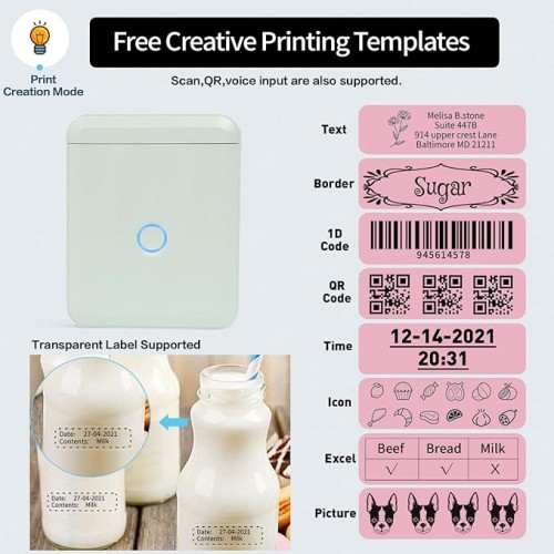 - 【ATTENTION & PRINT】 – The App is downloaded from APP STORE or Google Play and supports bar-code, qr code, picture, scan code, text, Excel import, smart OCR scanner, massive vivid icons, easily create your own customized labels , preview and save record, improving efficiency.It can be Large-capacity continuous printing, which can complete 50-160 more than one continuous repeat printing.