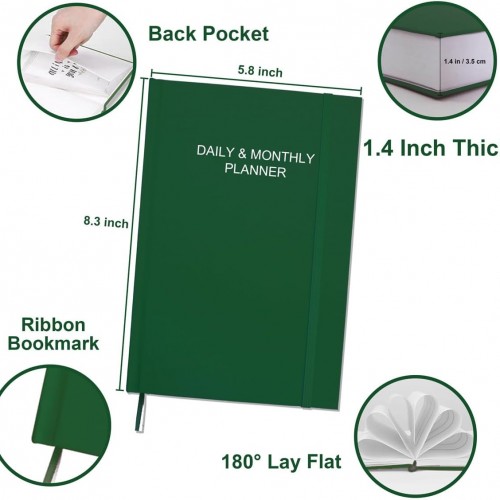 Daily & Monthly Planner for 2025 2026 or Anytime – ADHD Planner Two Pages Per Day, Daily Planner Undated to Increase Focus, Eliminate Overwhelm, Achieve Your Biggest Goals, 5.8” × 8.3”, Green