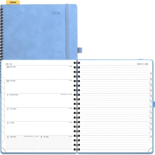 Daily Planner 2025-2026, Academic Planner 2025-2026 Weekly and Monthly Planner, Calendar Book with Hourly Schedule 8.5″x5.8″, July 2025 to June 2026, Faux Leather Cover (Red)