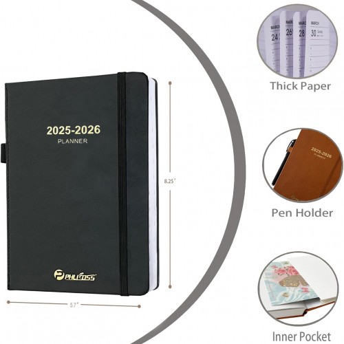 Daily Planner 2025-2026, One Page Per Day, Academic Calendar (July 2025 – June 2026), Appointment Book with Time Slots and Monthly Tabs, 5.7″ x 8.25″, Pocket, Leather Cove (Black)