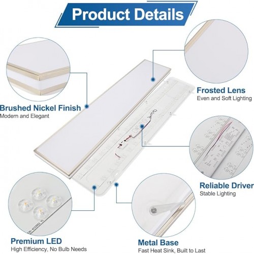 DAKASON 4FT Rectangle LED Flush Mount Ceiling Light for Kitchen/Laundry, 48W Wraparound 3/4/5000K Selectable, Hardwired 4’ Linear Lights Fluorescent Tube Replacement, Dimmable 2Pack