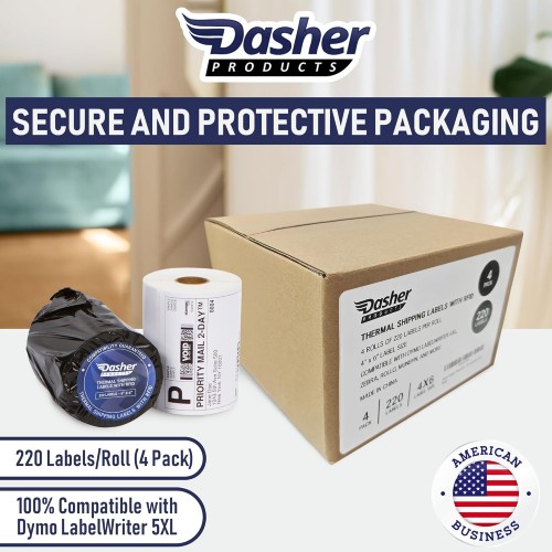 Dasher Products Thermal Shipping Labels with RFID Chip Compatible with Dymo LabelWriter 5XL 1744907 4×6 Internet Postage Labels, Water Resistant, Strong Adhesive, Perforated, 220 per Roll (4 Pack)