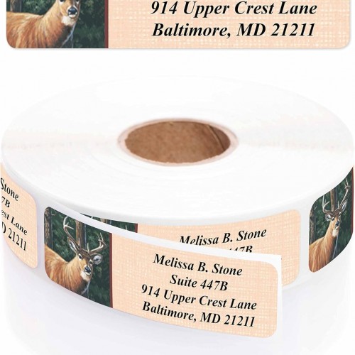 Deer Designer Rolled Address Labels with Elegant Plastic Dispenser