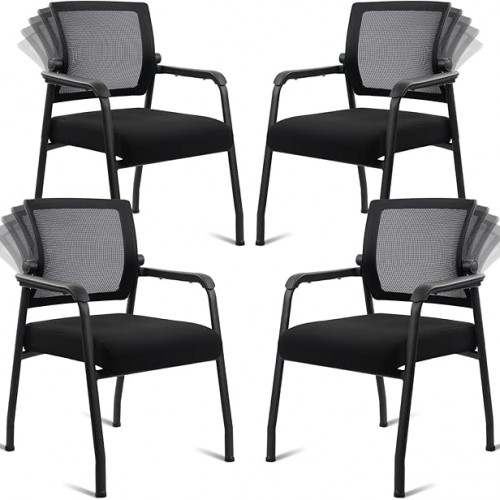 Desk Chair No Wheels, Arm Chair with Ergonomic Lumbar Support and Thickened Seats Cushion, Waiting Room Chairs for Office School Church Guest Reception, Black