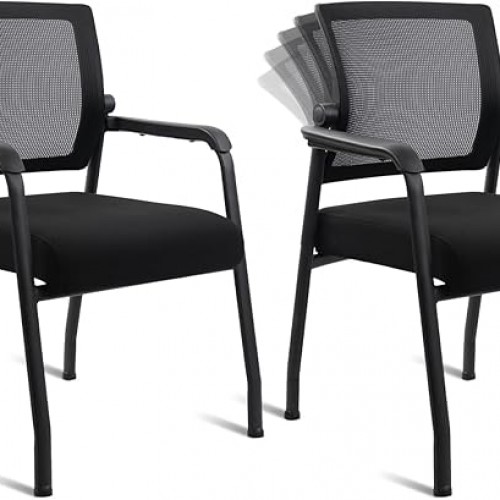 Desk Chair No Wheels with Adjustable Mesh Backrest, Arm Chair with Ergonomic Lumbar Support and Thickened Seats Cushion, Waiting Room Chairs for Office School Church Guest Reception, 4PACK