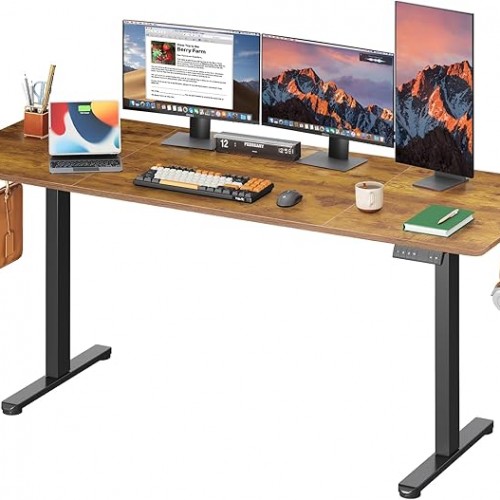 DEVAISE 48 Inch Electric Standing Desk, 3 Adjustable Height Stand up Desk for Home Office, Ergonomic Sit to Stand Desk with LED Touchscreen, Headphone Hook, 3 Memory Preset Computer Desk (Maple)