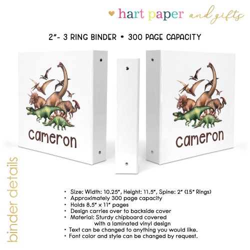Dinosaur Personalized Custom 2″ 3 Ring Binder • School Office Supplies