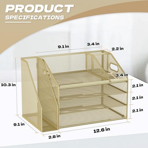 - Durable Steel Mesh Construction: Made from high-quality steel mesh material, this file organizer for desk is designed for long-lasting use. The steel mesh not only offers a sleek, modern appearance but also provides strength and durability for your office needs. It’s a stylish addition to your office that combines functionality and aesthetics