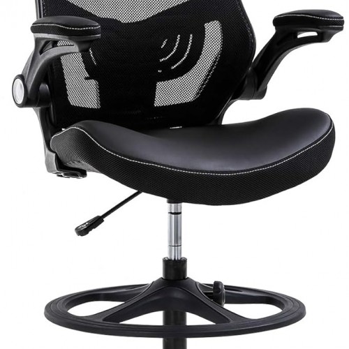 - Versatile and Adjustable Workspace Solution: This ergonomic drafting chair by Primy is perfect for various workspace environments, including standing desks, sitting desks, and bars. It features flip-up armrests for space-saving convenience, an adjustable height mechanism, and a foot rest ring for enhanced comfort and circulation