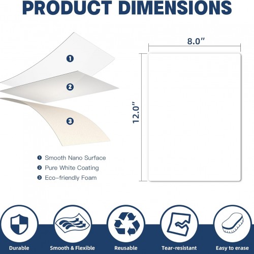 Dry Erase White Board, Small Dry Erase Sheet for Fridge, Non-Magnetic Whiteboard, 12″ x 8″ Reusable & Removable Whiteboard for Wall/Refrigerator/Door/Classroom(5 Sheets)