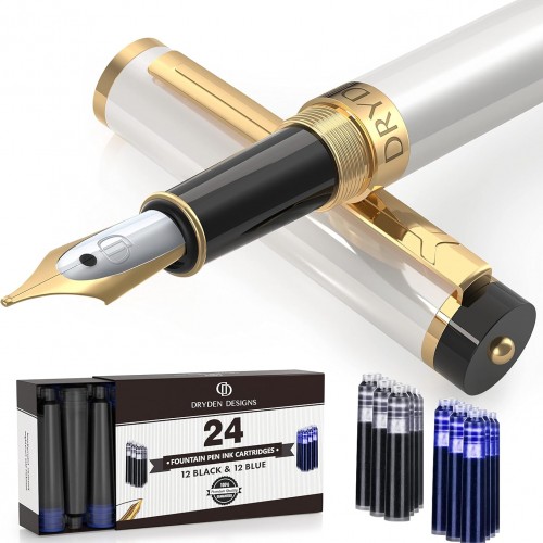Dryden Designs Fountain Pen Medium Nib Gift Pouch – with 24 Ink Cartridges – MCM (Intense Black)
