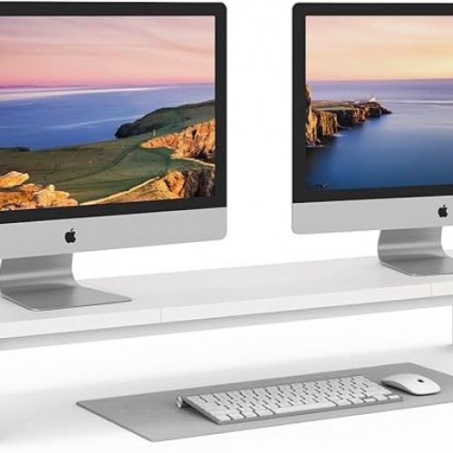 Dual Monitor Stand Riser, 39Inch Large Monitor Stands for 2 Monitors, Computer Monitor Stand, Wooden Desktop Oraganizer Shelf for Office Desk Computer,Laptop,TV