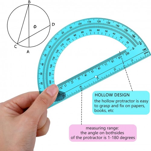 EBOOT 24 Pack Plastic Protractors Math Protractor 180 Degrees 6 Inch (Pink, Blue)