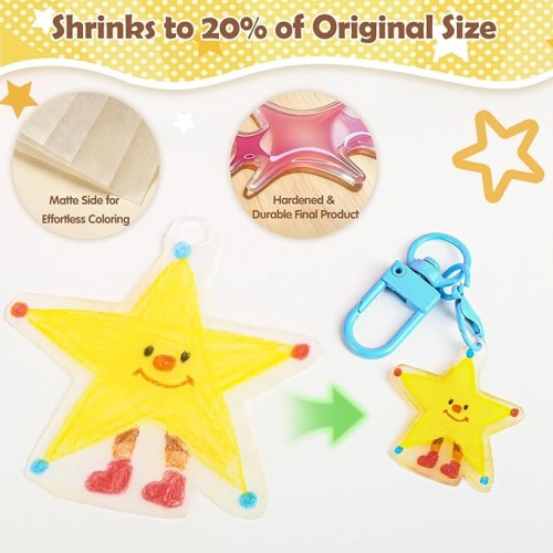 - Complete 198 PCS Shrink Plastic Kit: Includes 20 shrink plastic sheets, hole punch, colored pencils, and keychain accessories. Everything you need for fun shrinky art and DIY keychain making in one set