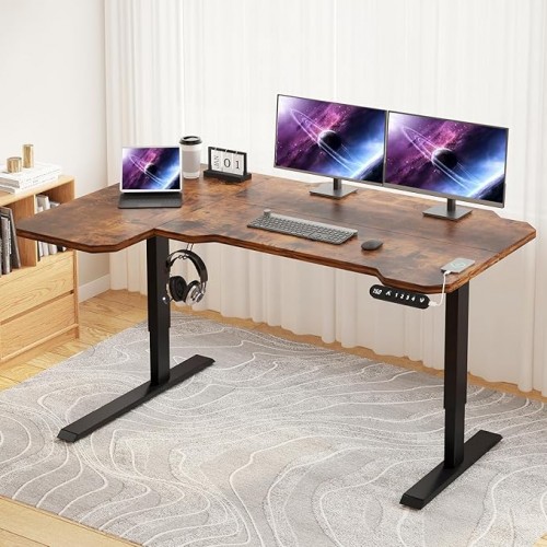 Electric Height Adjustable Standing Desk, Sit – Stand Desk for Work or Home Office Push Button Memory Settings Splice Board (Light Oak, 59×24)
