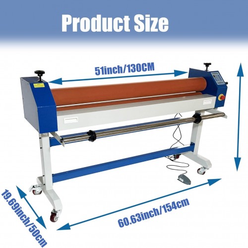 Electric Manual Cold Laminator, Movable 51IN/1300MM Wide Format Large Roll Laminating Machine Rubber Roller with Frame for Office Film Photo Vinyl Poster Laminating
