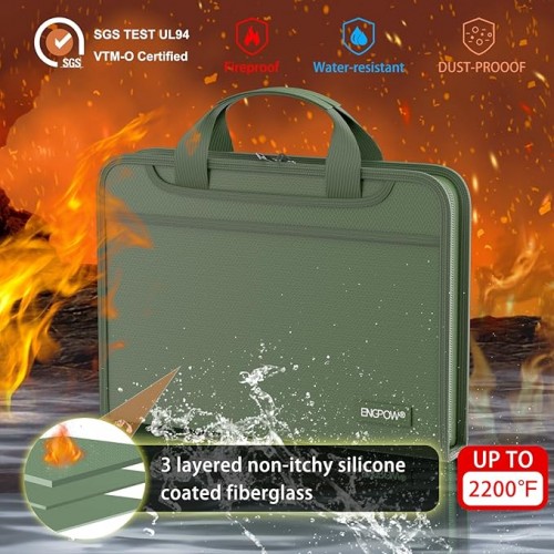 - High-Quality Materials: Protect your files with ENGPOW fireproof accordion file folder.It is made of non-itchy silicone-coated fiberglass which withstand the temperature up to 2000℉.It has been passed by SGS TEST(UL94 VTM-0 Certified).Fireproof File Folder is fireproof&Water-resistant,which can effectively protect your important documents in a fire,flood,and wet weather. They will further keep your files intact.Giving you time to save your important documents when disaster strikes.