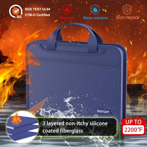 ENGPOW Accordion File Organizer,Fireproof Expanding File Folder with Multi Pockets,13 Pockets Document Organizer with Handle & Labels,Portable Home Travel Safe Storage Folder for Letter A4 Files,Blue