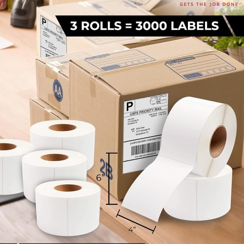 enKo 3 Rolls 4″ x 6″ Direct Thermal 3000 Labels 3″ Core – Address & Shipping Labels Compatible for Industrial Printer Zebra 220Xi4 ZT200 ZT400 ZT510 ZT600 Datamax NATO Intermec