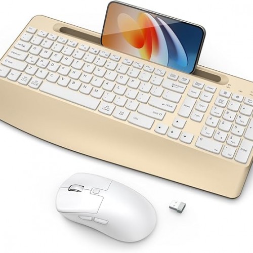 - 【Ergonomic Design with Wrist Rest】 Gold keyboard designed with a generous palm rest and tilt legs, offers a better typing position to reduce the pressure on your wrist. The usb gold wireless keyboard has a comfortable touch and typing feel, every detail is carefully crafted to fit your hand fully.(Special Reminder: This product is a USB wireless keyboard,and no mouse included. Please be informed.)