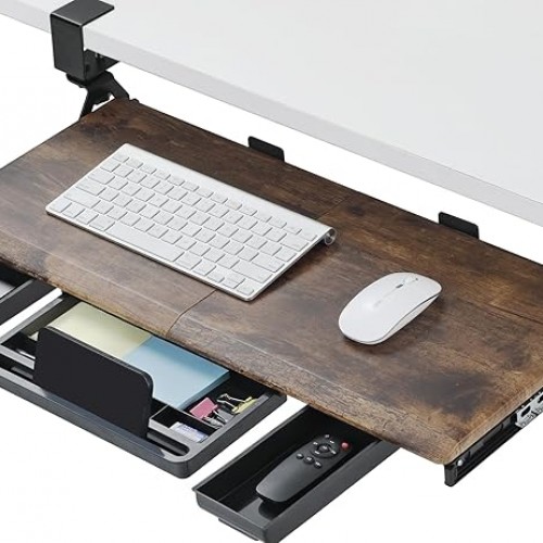 - [UPGRADE STEEL SLIDING TRAY] Retractable steel smooth sliding rail design allows the desk drawer to glide smoothly forwards and backward. It encourages you to keep your arms and wrists in a neutral position and aids in the prevention of injuries caused by poor posture. Simply slide the tray under your desk when not in use and quickly pull it out when you need more space.