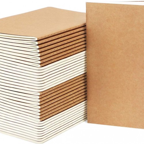 EUSOAR Blank Paper Notebook, 36pcs A5 5.5″x8.3″ 60 Pages Soft Cover Kraft Subject Journal Diary Notebooks, Writing Note Pads Sketchbook Memo Composition, for School Office College