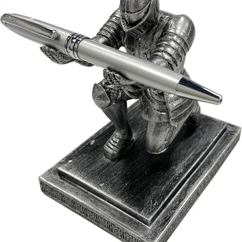 - Package: kneeling knight, base, a pen. You need to glue the base with kneeling knight together. Could be a cool thing when you DIY it yourself. This gift not a real metal staff, just a masterpiece of resin handicrafts. Fathers day gifts for dad