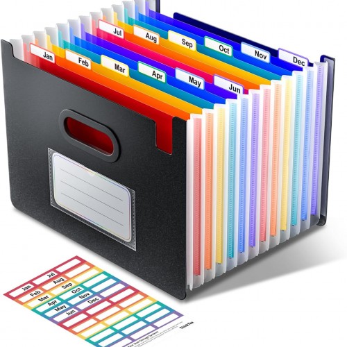 Expanding File Pockets with Flap,Heavy Duty Expandable Folder Bag,Elastic Cord Closure,Accordion File Organizer for Office,School,Home,Letter Size Kraft