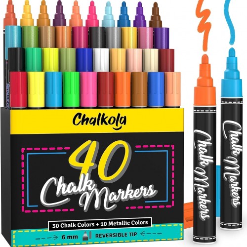 Extra Fine Tip Chalk Markers – (1mm Tip, Pack of 40) Neon, Pastel & Metallic | Erasable Liquid Chalk Pens for Chalkboard, Blackboard, Window, Labels, Bistro, Glass – Wet Erase Markers Fine Point