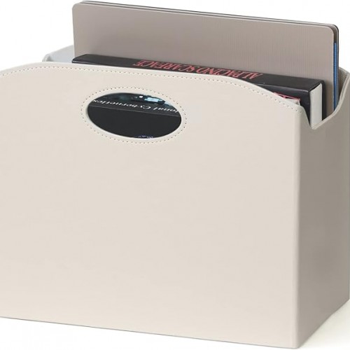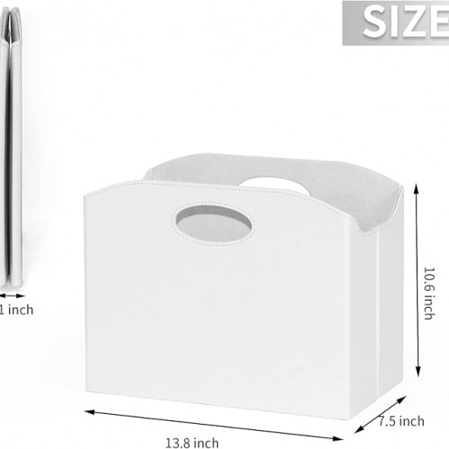 EZDeco Magazine Holder Foldable Magazine Rack Floor PU Leather File Holder Newspaper Book Storage Basket Document File Folder Organizer for Office Home (White-1)
