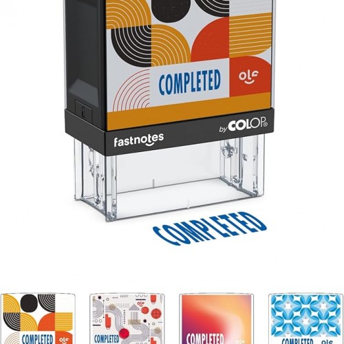 Fastnotes Completed Self-Inking Rubber Stamp by COLOP – Great for Office Documents, Notary, Warehouse, Accounting Paperwork, Business, and Legal Documentation – Blue Ink (Completed- Blue)