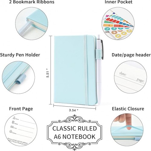 - Feela 15 Pack College Ruled Sky Blue Notebooks contains 15 college ruled sturdy cover notebooks and 15 Black Retractable Pens. Each of the notebooks measures 3.5” x 5.5”, which is perfect to carry and easily held by young girls and boys. These black cute pens are customized to be placed in the pen holder, which is pretty convenient.