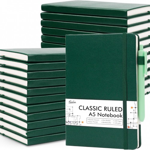 feela 15 Pack Pocket Small Notebooks Bulk, Mini Cute Notepads Hardcover College Ruled Lined Journals with Pen Holder for School Business Memos, with 15 Black Pens, 3.5”x 5.5”, A6, Orange