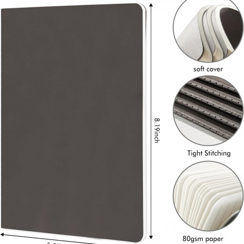 feela 16 Pack Soft Cover Journal Bulk, Lined Notebooks College Ruled for Work for Women Girl Writing, Blank Travel Journal Note Taking Notebook School Business Supplies, 8.2” x 5.5”, A5, Gray