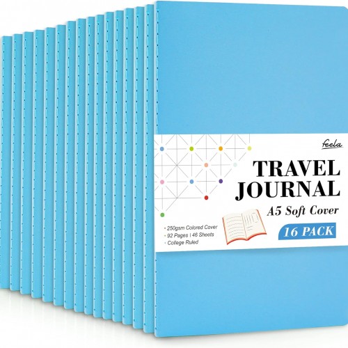 - Feela 16 Pack Soft Cover Journals include 16 light blue A5 college ruled soft cover travel journals. 250 GSM colored paper cover outside and 80 GSM smooth writing lined pages inside.