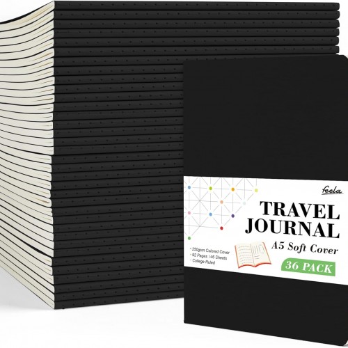 feela 18 Pack Journal Notebook for Work, Business Notebook Bulk Hardcover Lined Writing Journal with Pen Holder for Men Women Note Taking, with 18 Black Pens, 120 GSM, 5.1”x8.3”, A5, Black
