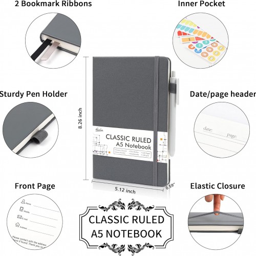 - Feela 24 Pack Classic Ruled Notebooks contains 24 classic gray ruled sturdy cover notebooks and 24 Black Retractable Pens. Each of the notebooks measures 8.3” x 5.1”, which is perfect to carry and easily held by young girls and boys. These black cute pens are customized to be placed in the pen holder, which is pretty convenient.