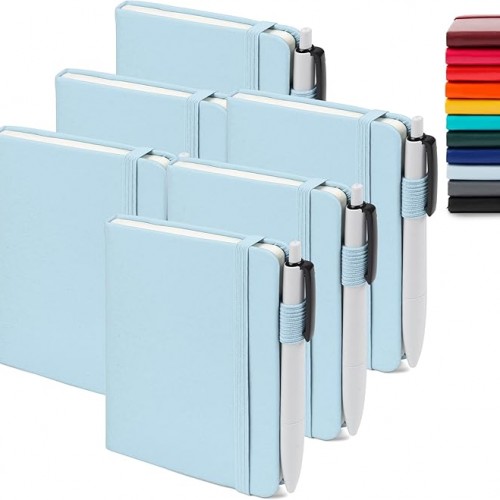 feela 6 Pack Pocket Small Notebooks Bulk, Mini Cute Memo Notepads Hardcover College Ruled Lined Journals with Pen Holder for Women Girls Office School, with 6 Black Pens, 3.5”x 5.5”, A6, Aqua