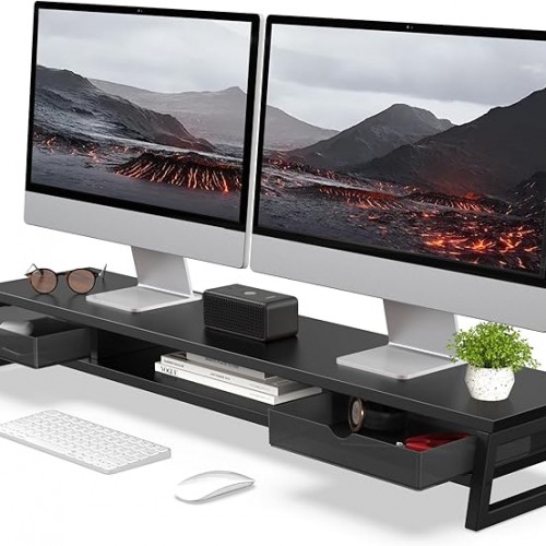 - 【Large Monitor Stand】: The dimensions of the desktop riser is 42.5″L X9.2 “W X 5.4″H.Computer monitor stands for 2 monitors/laptop/TV.This is an ideal choice when you need multiple computers to work together. Large and sturdy, with added central support beam, it has enhanced stability. It can accommodate 99 lbs (45 kg).