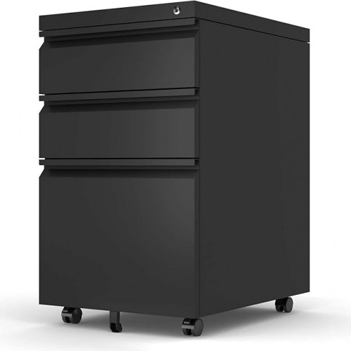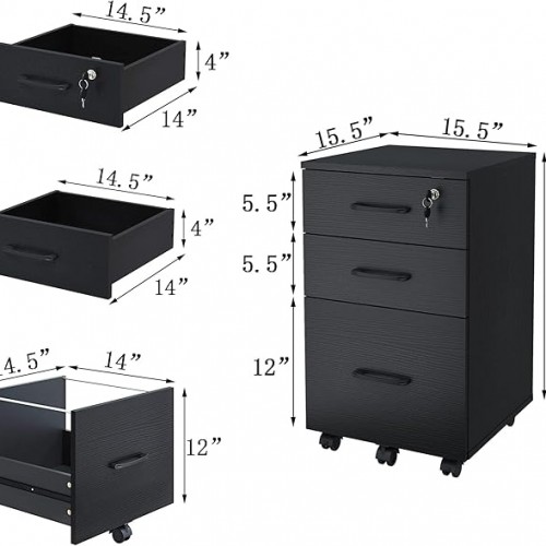 File Cabinet with Lock,3 Drawer Wood Rolling Filing Cabinets Under Desk for Home Office, Office Storage Cabinet fits Letter/A4 Size,Mobile Filing Cabinet Printer Stand,Black