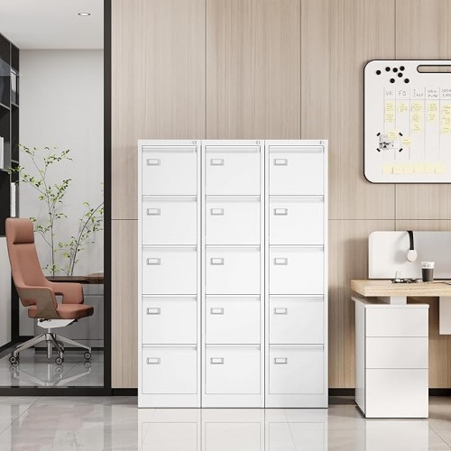 - LOCKABLE 5 DRAWERS FILE CABINET – All the file drawers can be locked by one lock, It is very convenient to control the whole filing cabinet with one key.