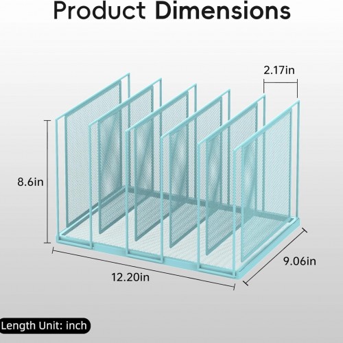 File Organizer for Desk, 5-Section Vertical File Sorter, Paper Holder Organizer Standing Metal File Folder for Office Home Classroom, Blue