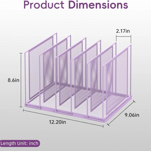File Organizer for Desk, 5-Section Vertical File Sorter, Paper Holder Organizer Standing Metal File Folder for Office Home Classroom, Purple