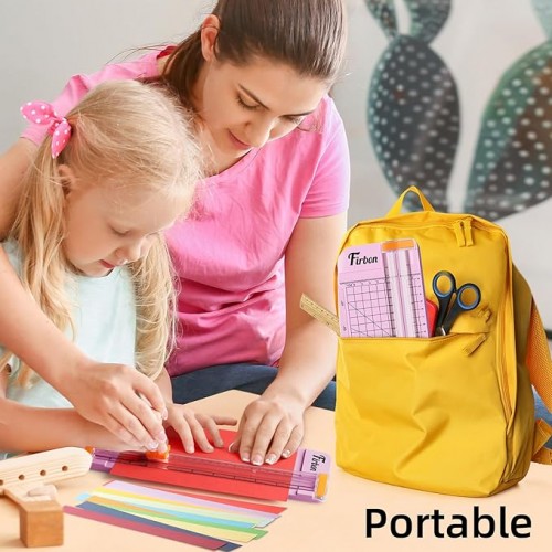 Firbon Blue A5 Paper Cutter, Straight Small Paper Trimmer with Side Ruler for Scrapbooking Craft, Paper, Coupon, Label, Cardstock